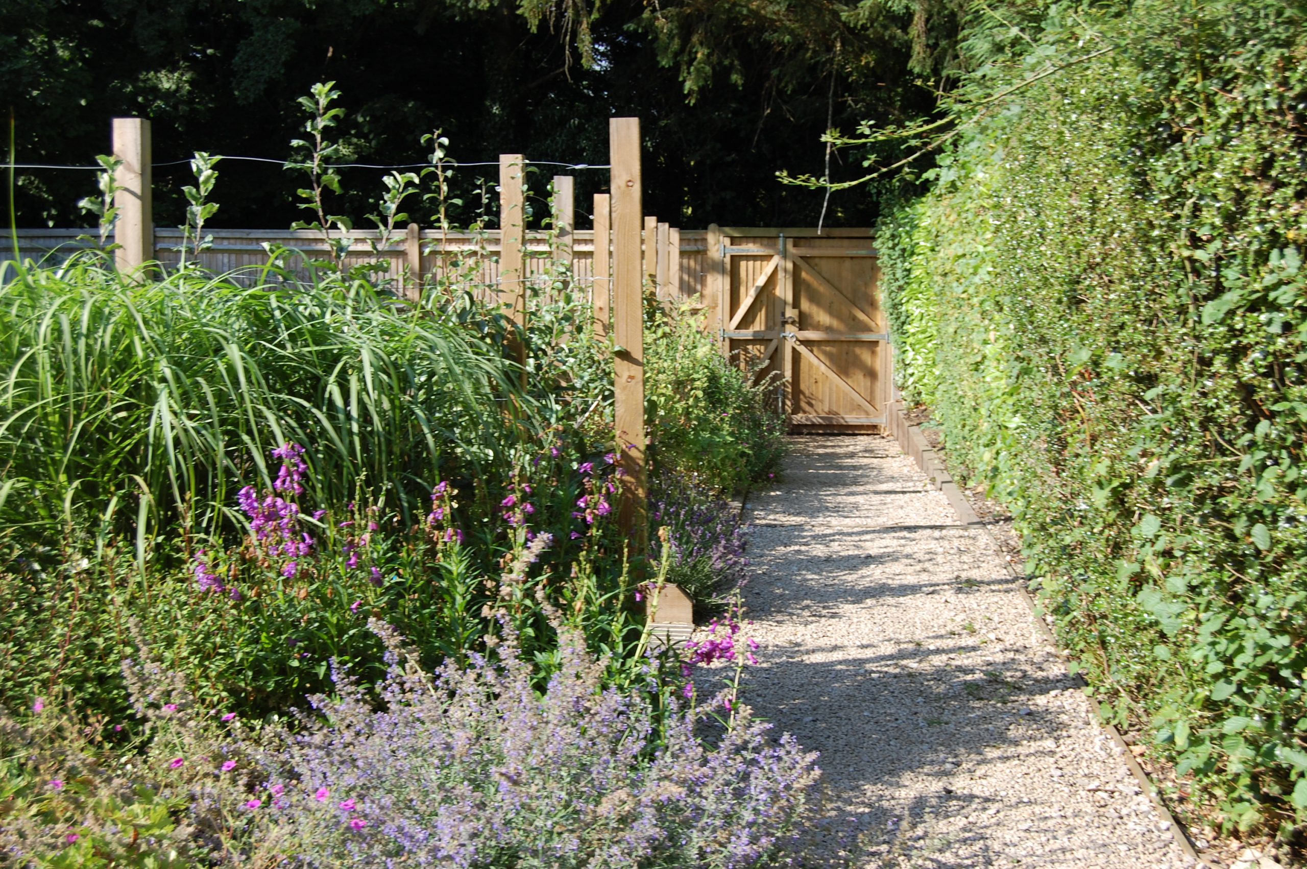 The vegetable garden is a key feature, arranged in neat raised beds or structured plots for easy access and year-round growing. Simple pathways between beds keep it tidy and child-friendly, while allowing little helpers to get involved safely. Planting is productive but attractive, blending herbs, leafy greens, and seasonal crops with a few flowering plants to encourage pollinators.